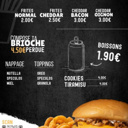 BINKS is a burger joint located on 88 Rue Oberkampf in Paris, known for its mouth-watering burgers and delicious sides. The menu offers a variety of options, from the classic BINKS burger with 160G black Angus beef and cheddar to the OIGNON burger with grilled onions and crispy onions. Each burger is served on a soft potato bun and drizzled with their signature BINKS sauce, adding an extra kick to every bite.